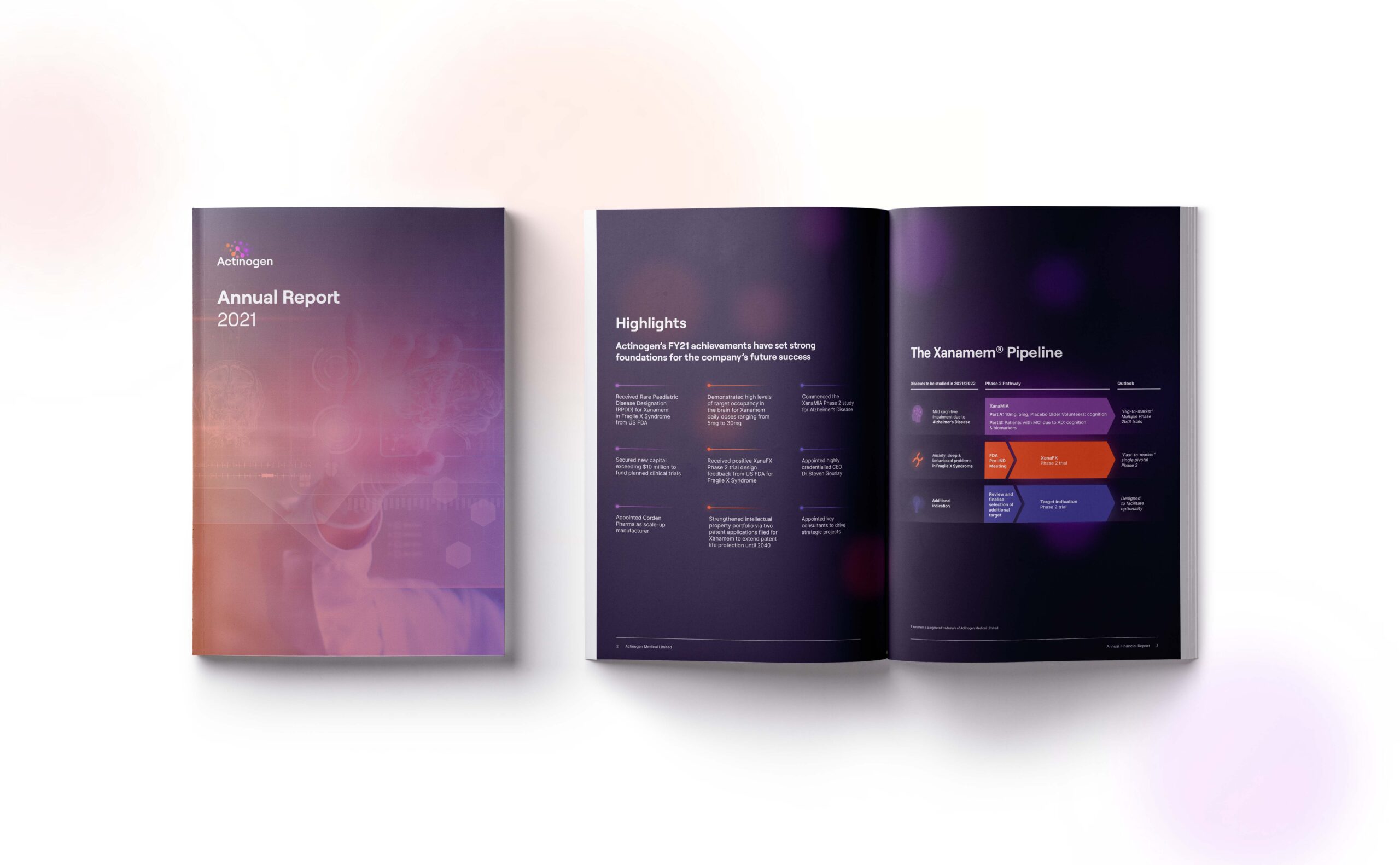 Actinogen reached out to us to assist in elevating their branding across a variety of formats, including digital and print. The vibrant and scientific design aesthetic highlights Actinogen’s mission to use innovative biotechnology and create a real difference in people’s lives.