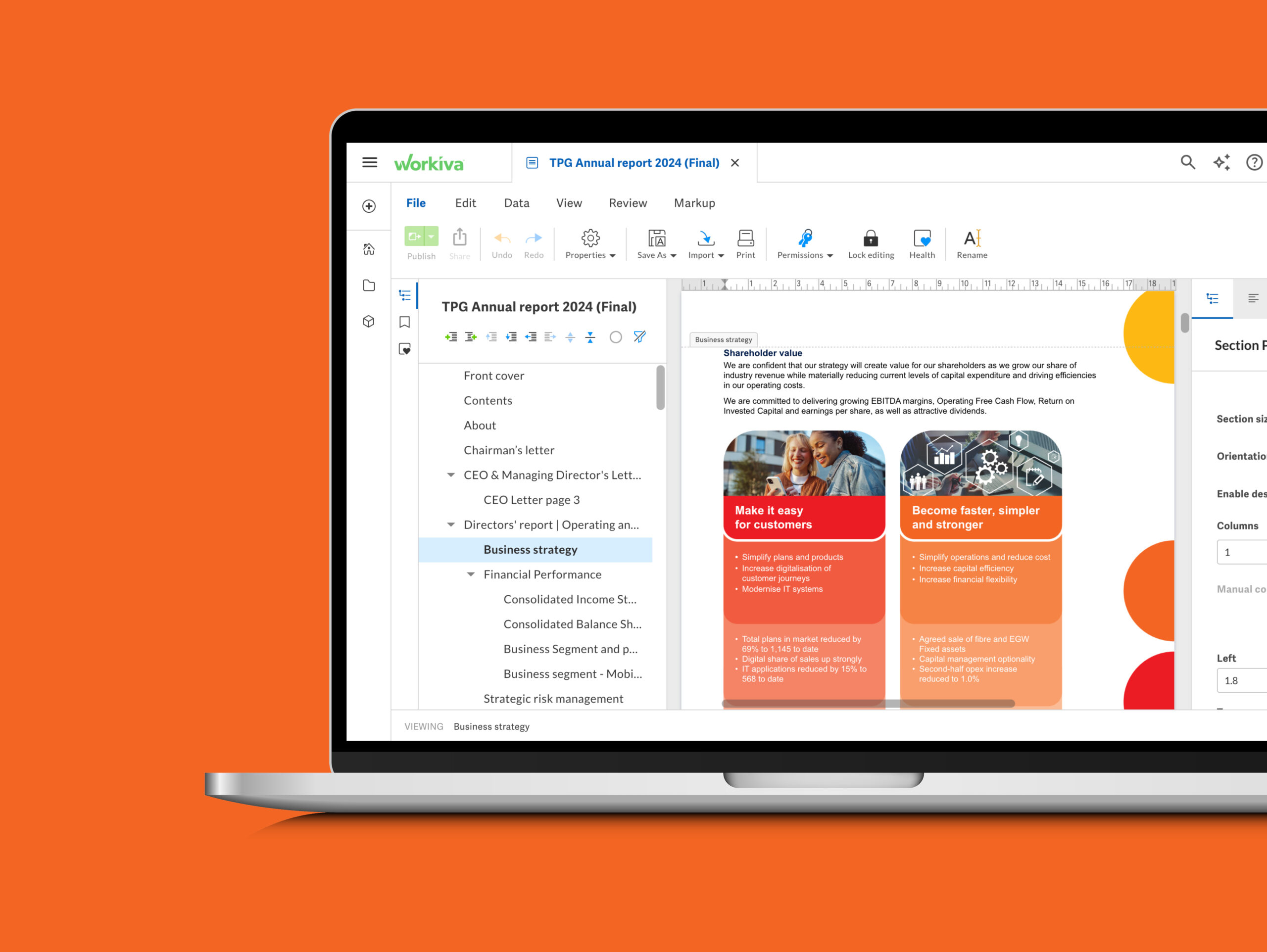 Annual Report Full-Year Results Presentation Corporate Governance Statement Tax Transparency Report Workiva design assistanceTPG Telecom is home to some of Australia’s most-loved brands including Vodafone, TPG, iiNet, AAPT, Internode, Lebara and felix. They own and operate nationwide mobile and fixed networks that are connecting Australia for the better. We have worked with TPG Telecom since 2021, assisting with the design and development of their Corporate Reporting Suite. During our first year working together, we assisted with streamlining their reporting processes and exploring different technologies and platforms that would best suit their internal processes and workflows.
