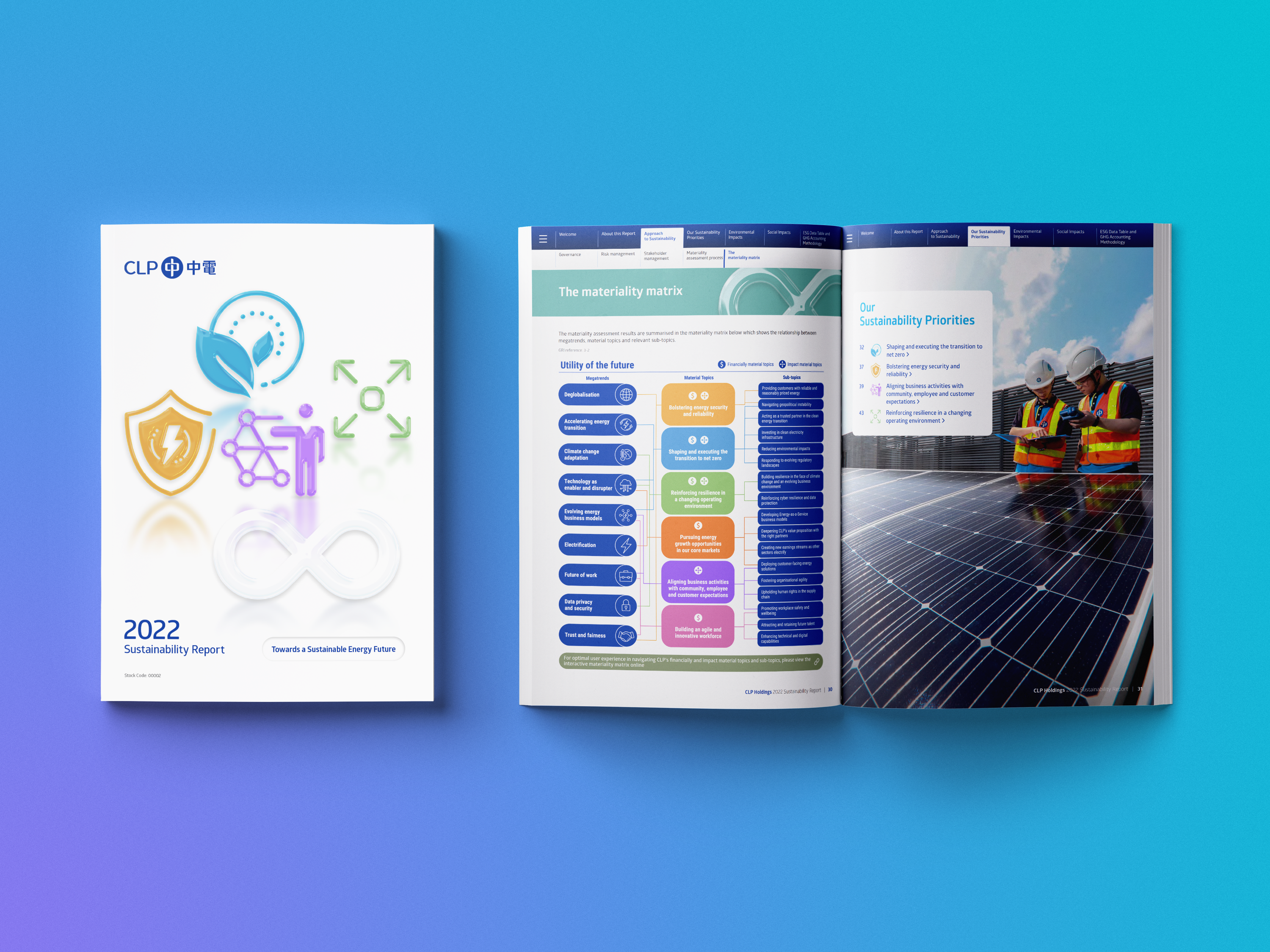The theme of CLP’s 2022 Sustainability Report focused on using iconography to represent the material topics and illustrates CLP’s pragmatic approach in building a sustainable business and the importance of cleaner, smarter energy in the transition to a net-zero economy.