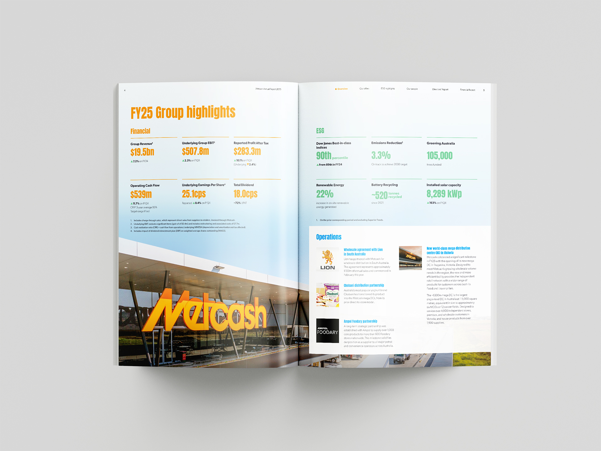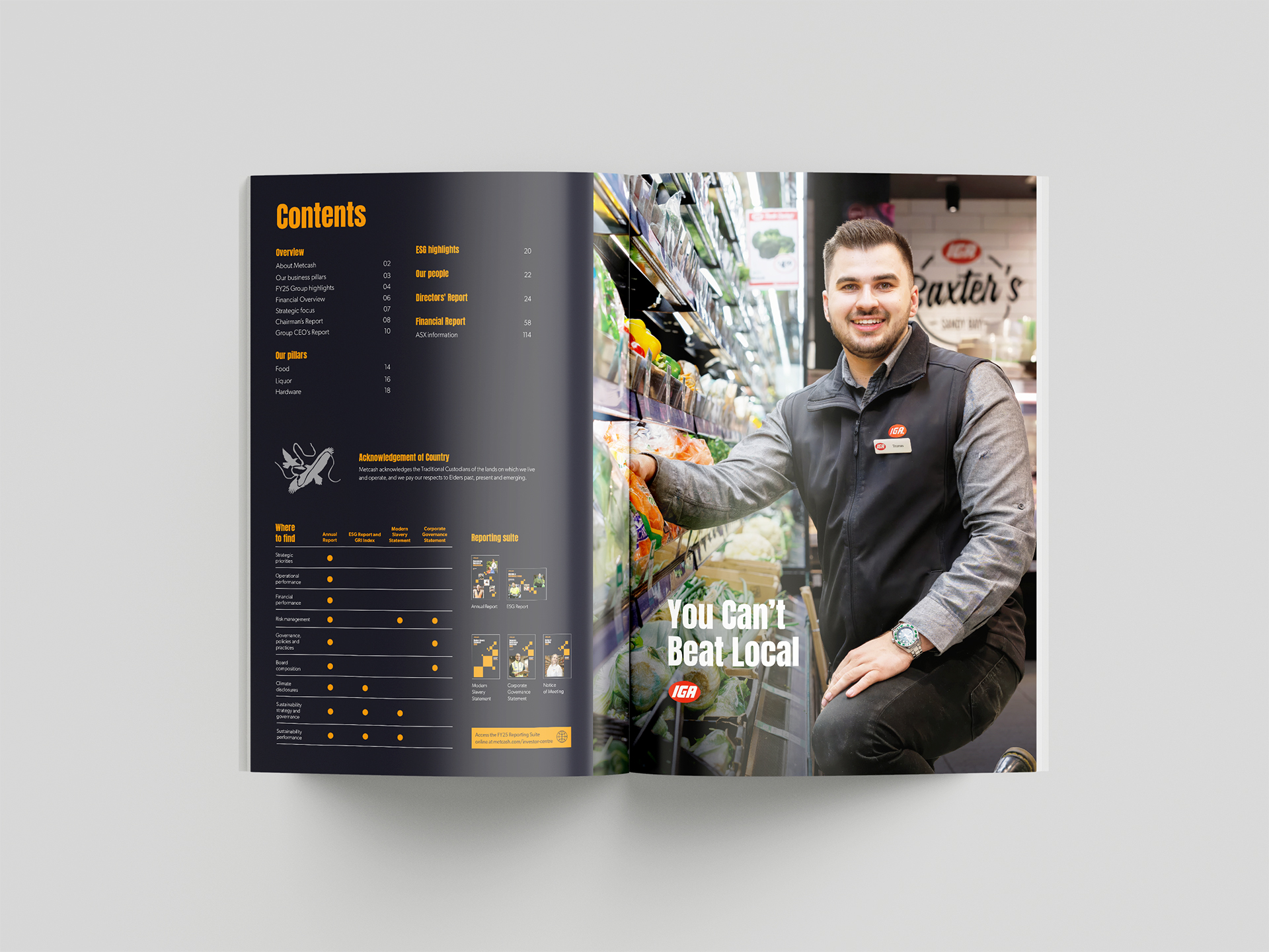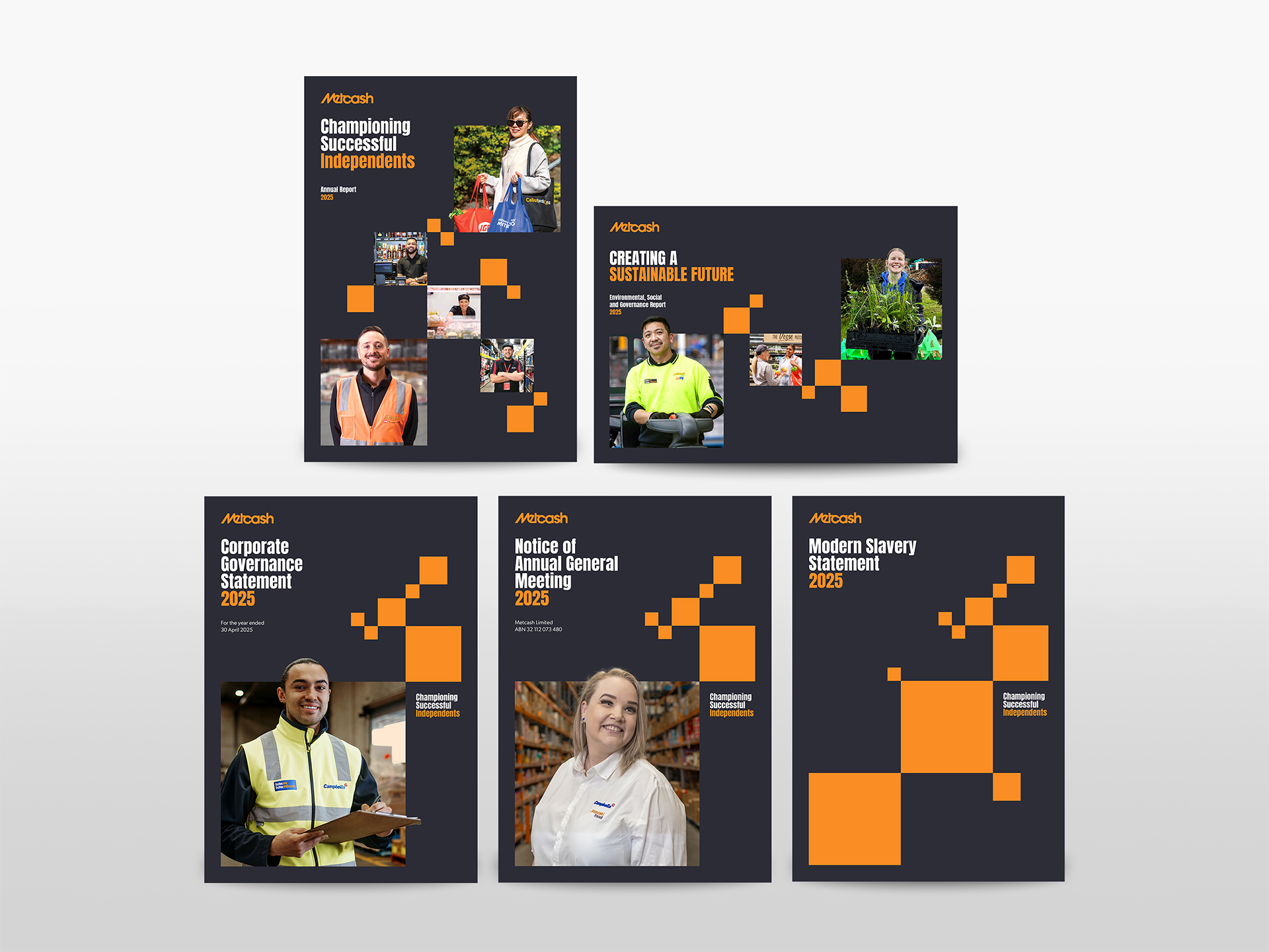 We worked collaboratively with the Metcash team and assisted with the conceptual designs, typesetting, editing processes and production for their entire reporting suite, consisting of their Annual Report, ESG Report, GRI Index, Corporate Governance Statement, Modern Slavery Statement and Notice of Meeting.