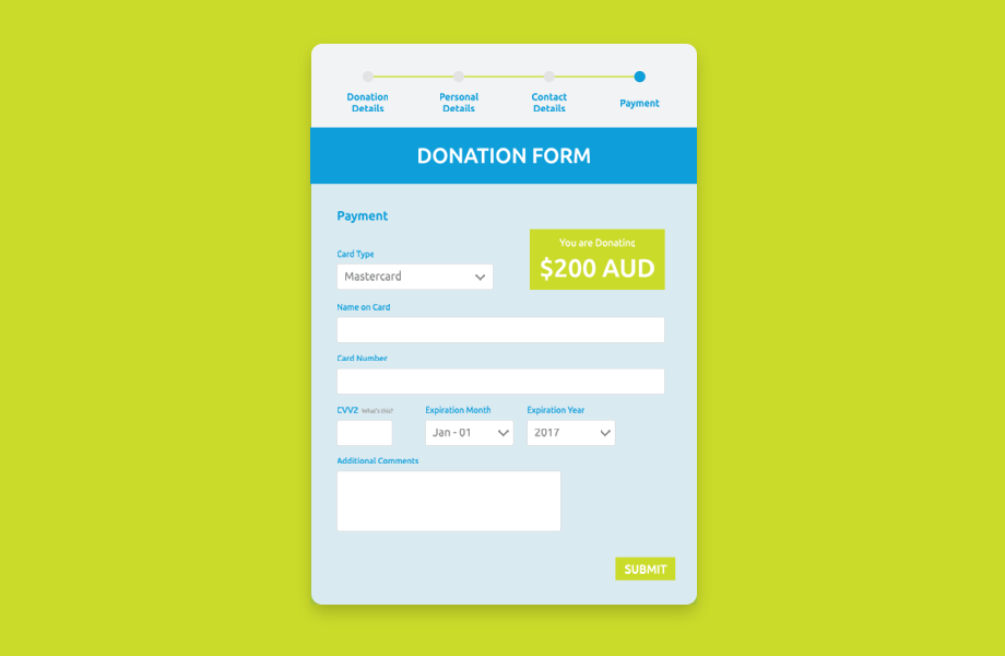 Funding is of utter importance for not-for-profit organisations. We developed an inviting call to action button to allow users to Donate. Key features being sticky and “in your face” button which randomly changes colour from page to page to add some delight to the user experience. The user is given the ability to collapse the button.