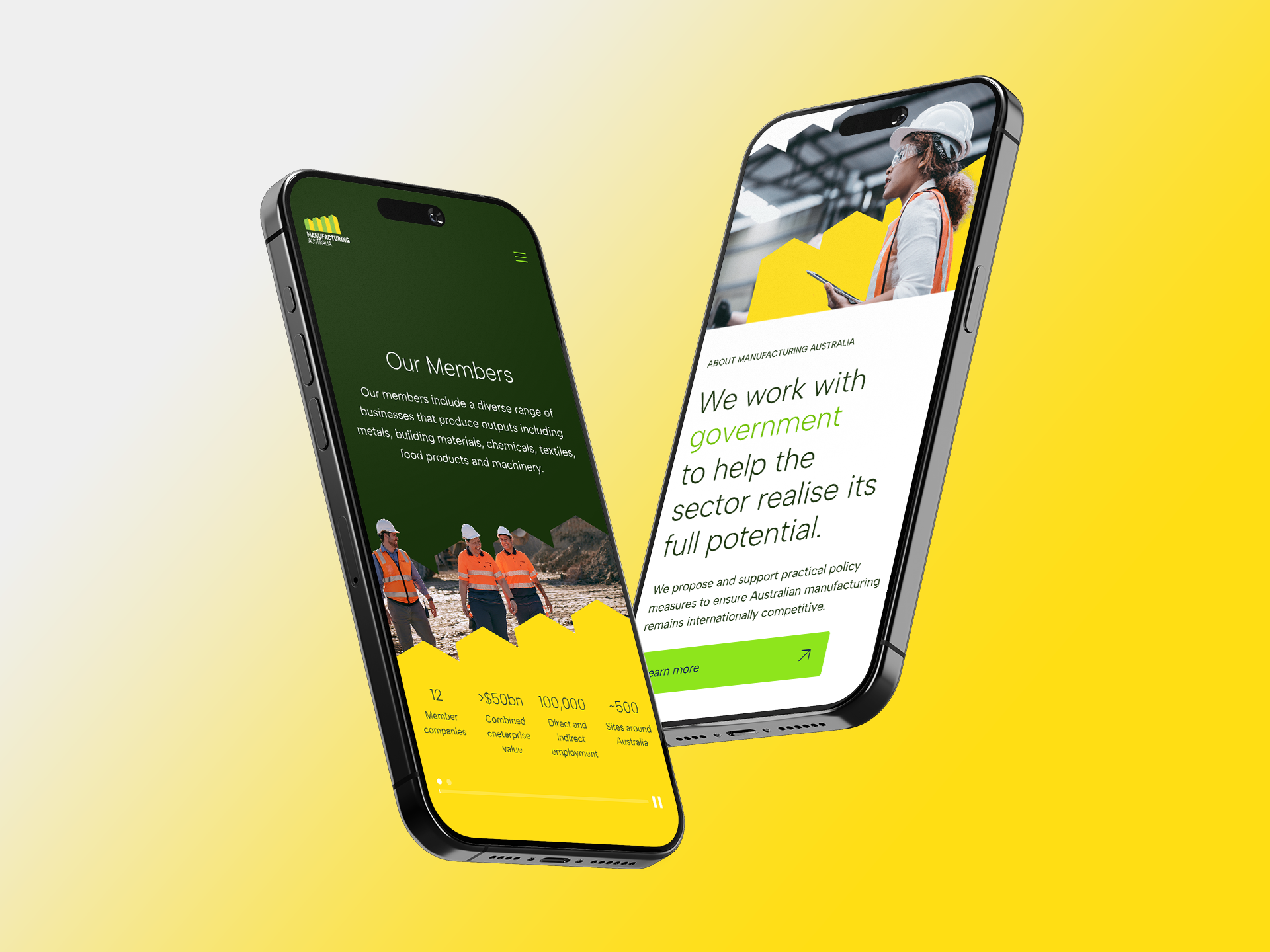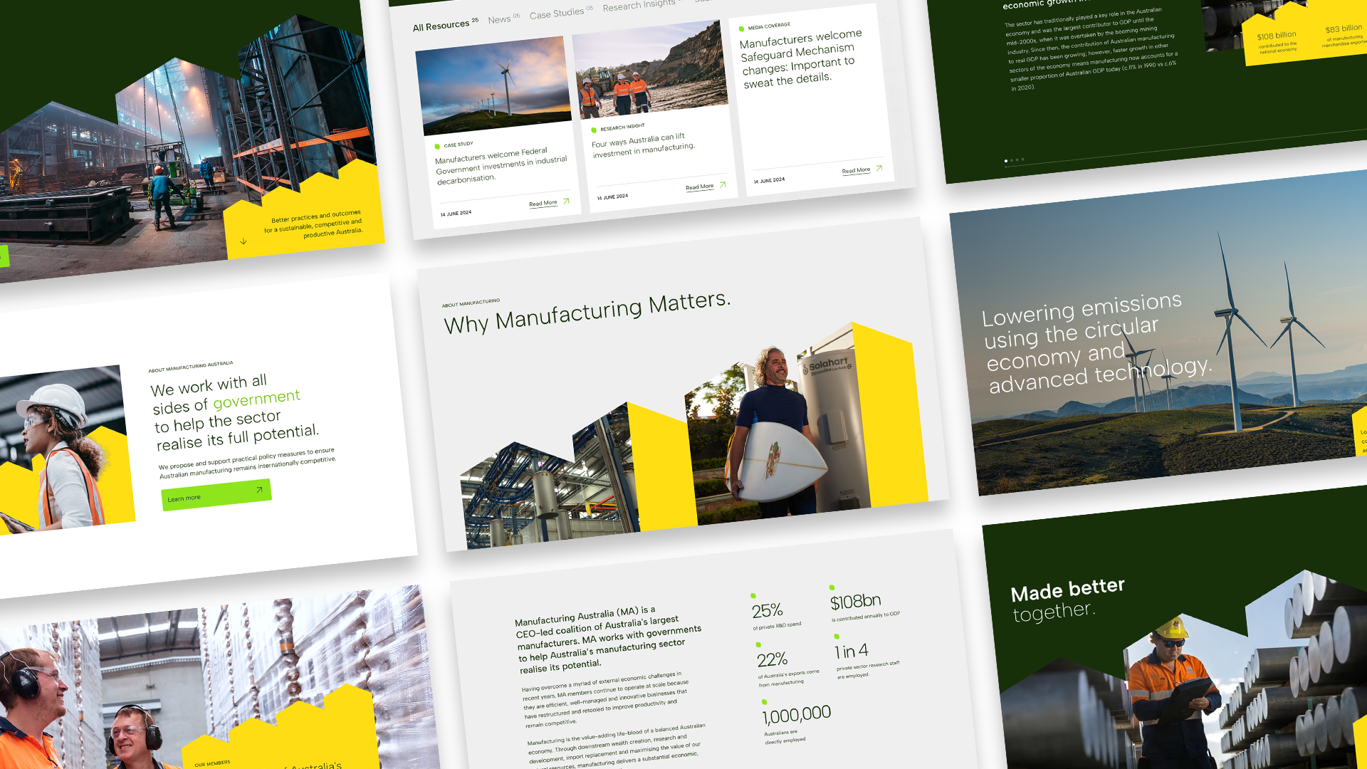WW was tasked to enhance Manufacturing Australia’s website and implement a small brand refresh to align with the quality of its members, highlight the CEOs of member companies and create a resource hub for government resources.