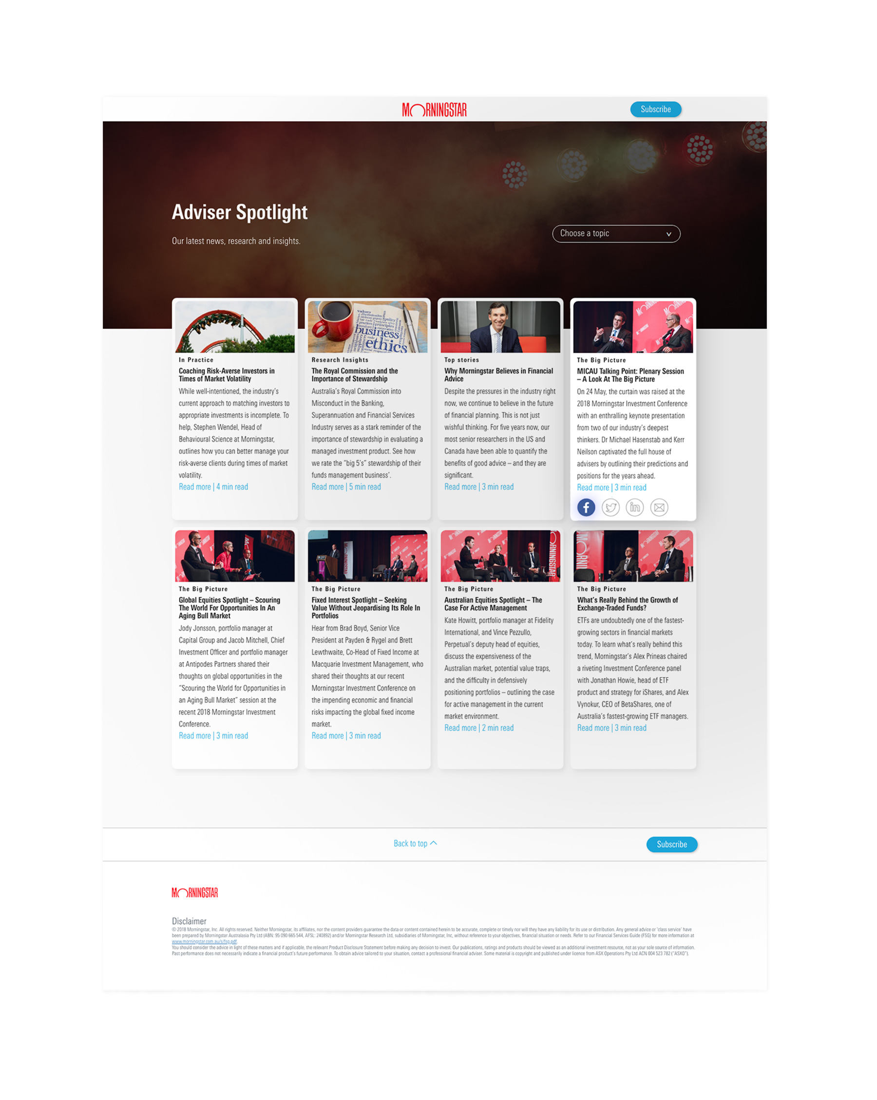 walterwakefield develop and maintain many digital assets for Morningstar. In-depth knowledge of their internal and forward-facing systems allows us to connect the corporate website to various microsites, EDM marketing platforms and their CRM. Automation and seamless integration then empower the content authors to generate content and reach their audience more efficiently.
