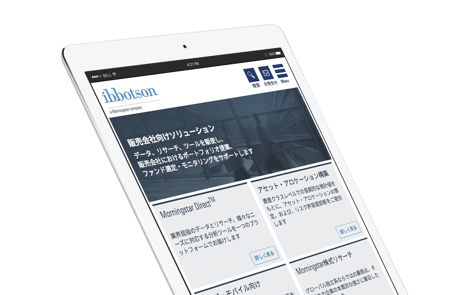 Ibbotson is a Morningstar Investment company based in Japan. They required not only a website in a different language but also a new visual expression. walterwakefield were able to implement this while utilising the existing digital infrastructure of the parent company, making it extremely cost-effective.