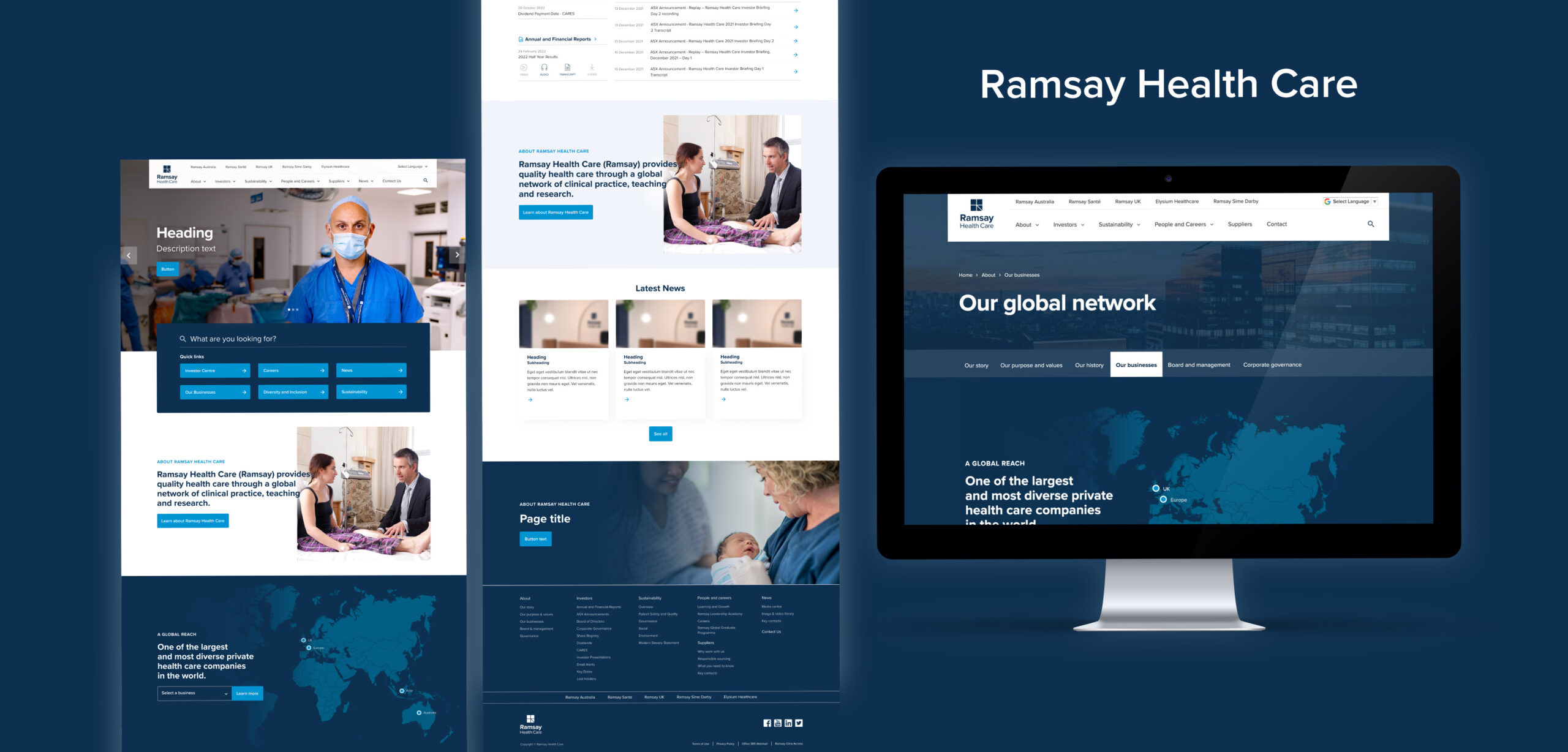 Ramsay Health approached walterwakefield to improve their existing website to better communicate their global network by developing webpage templates and a design system that more prominently features their sophisticated global aesthetic and better reflects their positioning as a leading global health CARE company