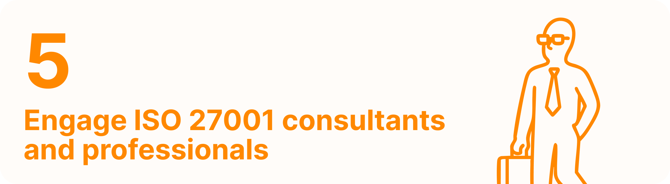 - An ISO specialist consultant – ISO365 – They are a consultant who helped us implement our ISMS and put it into practice. We have regular meetings where they keep us honest and accountable on certain action items. We’re all very busy, so we need this level of rigour.