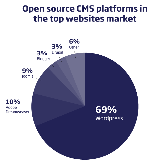We would not recommend WordPress if it is not the optimal tool for your needs. If your website requires client login capability and high-security applications, for example, you may look at alternatives. Sometimes a Custom CMS can be built if your website has very specific requirements. WordPress does have some open source competitors — Joomla, Drupal and Umbraco — to name a few. WordPress is the most popular and the fastest growing system for website CMS.